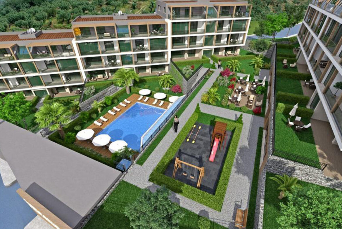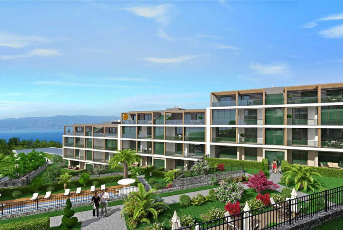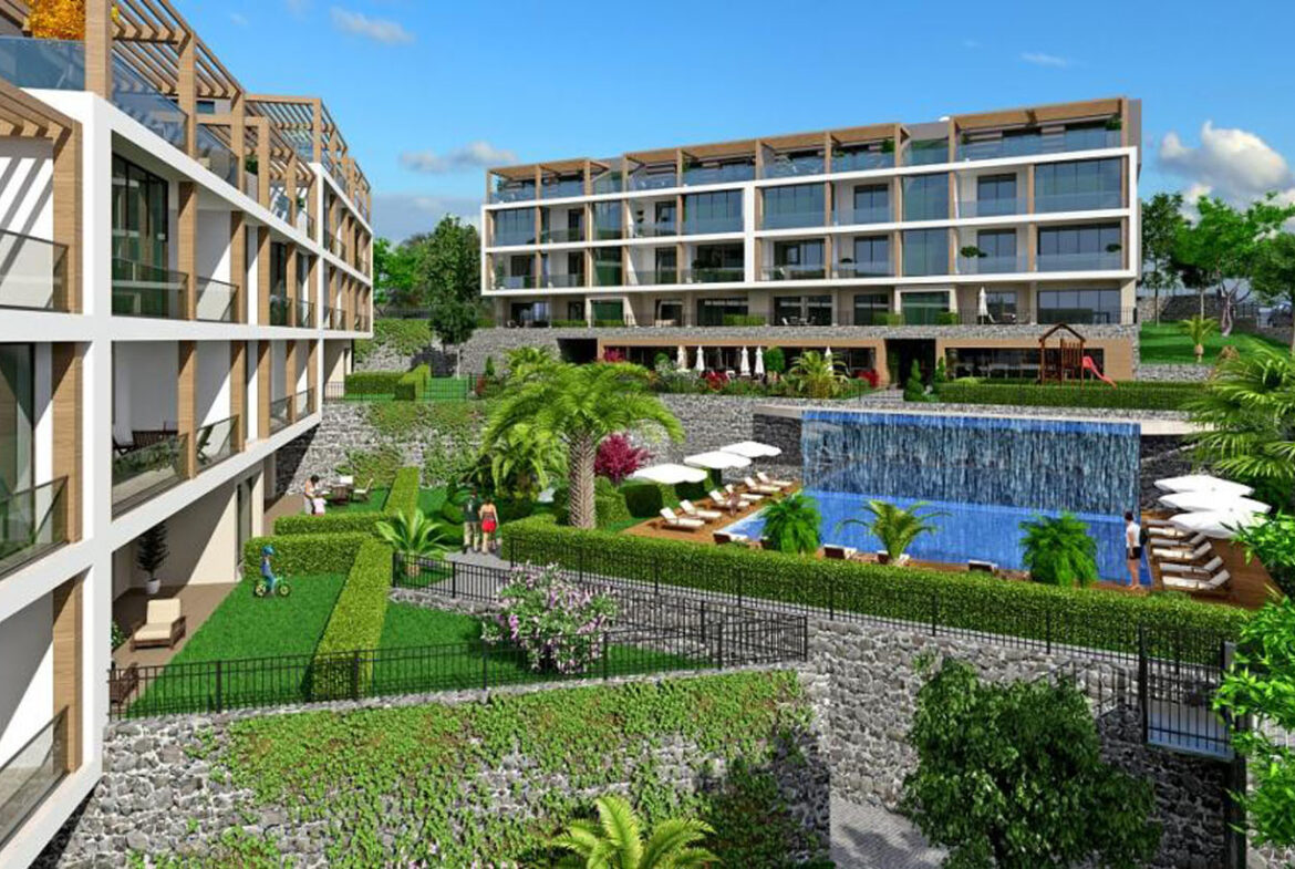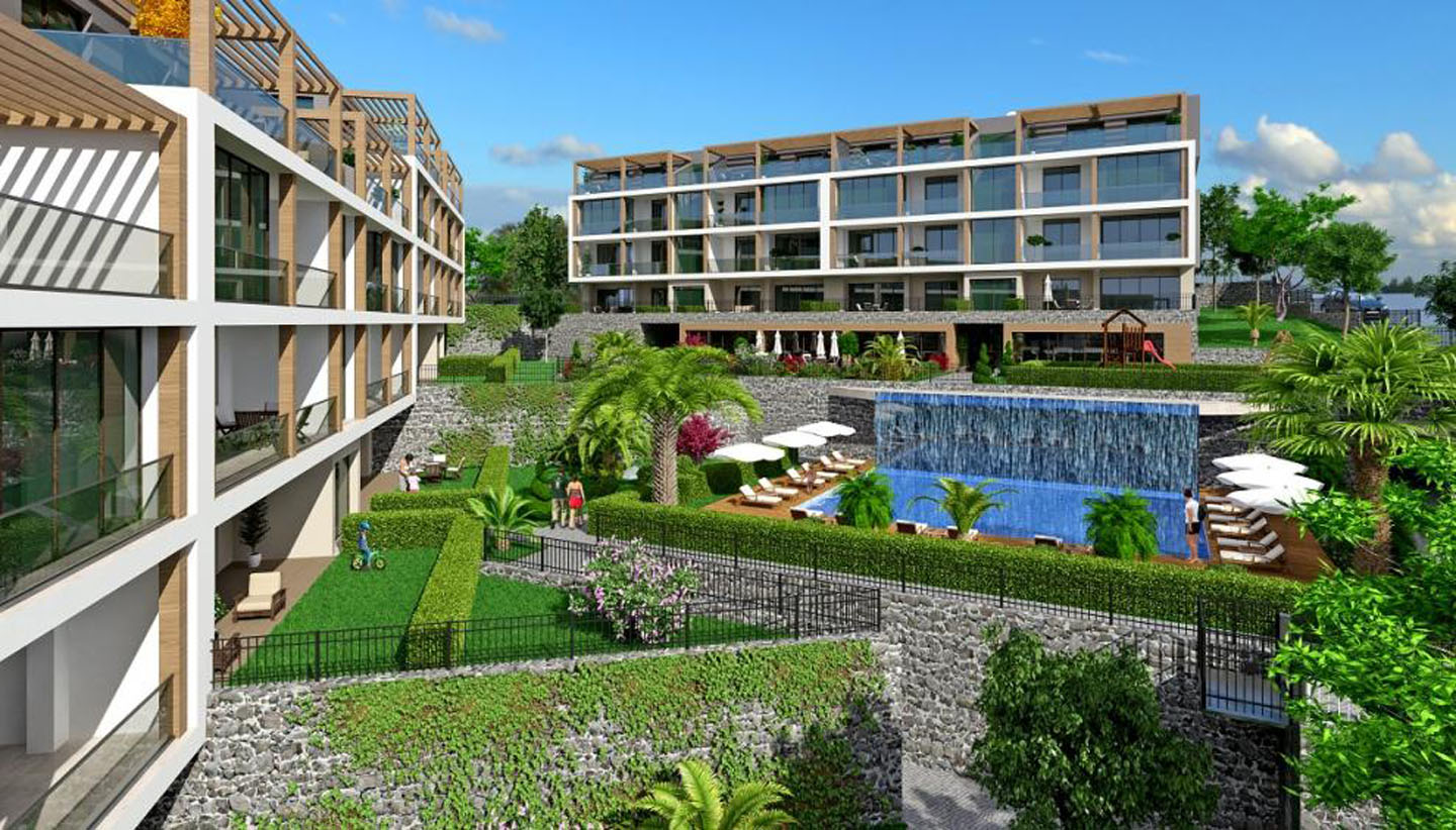 تم بناء المشروع في منطقة شديدة الانحدار بارتفاعات مختلفة مما يعني أن جميع الشقق تتمتع بإطلالة كاملة على البحر ، وتتميز الشقق بشرفات واسعة والطوابق العلوية عبارة عن شقق دوبلكس بينما تتمتع الشقق الأرضية بحديقة بمساحة 40 م.