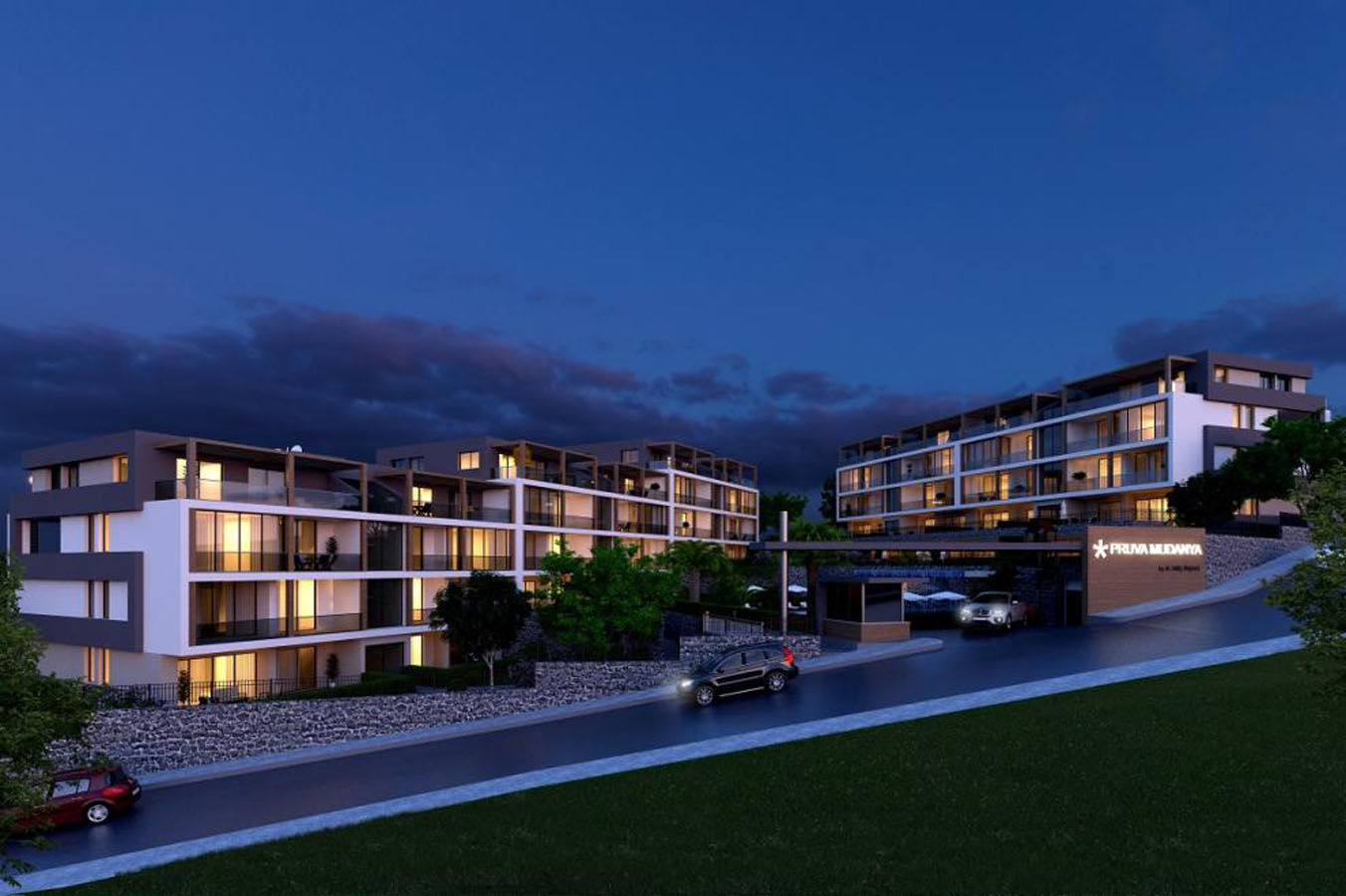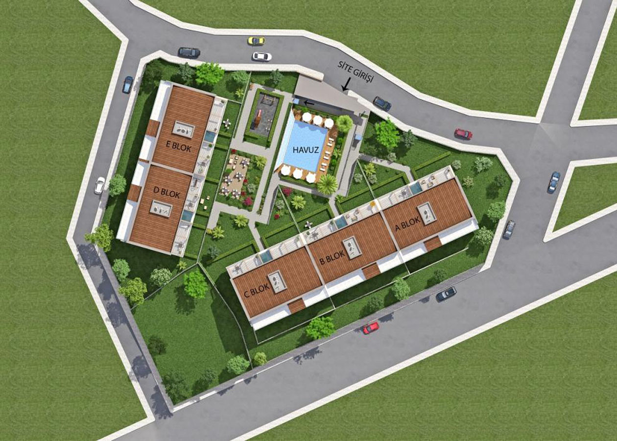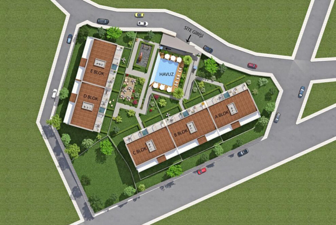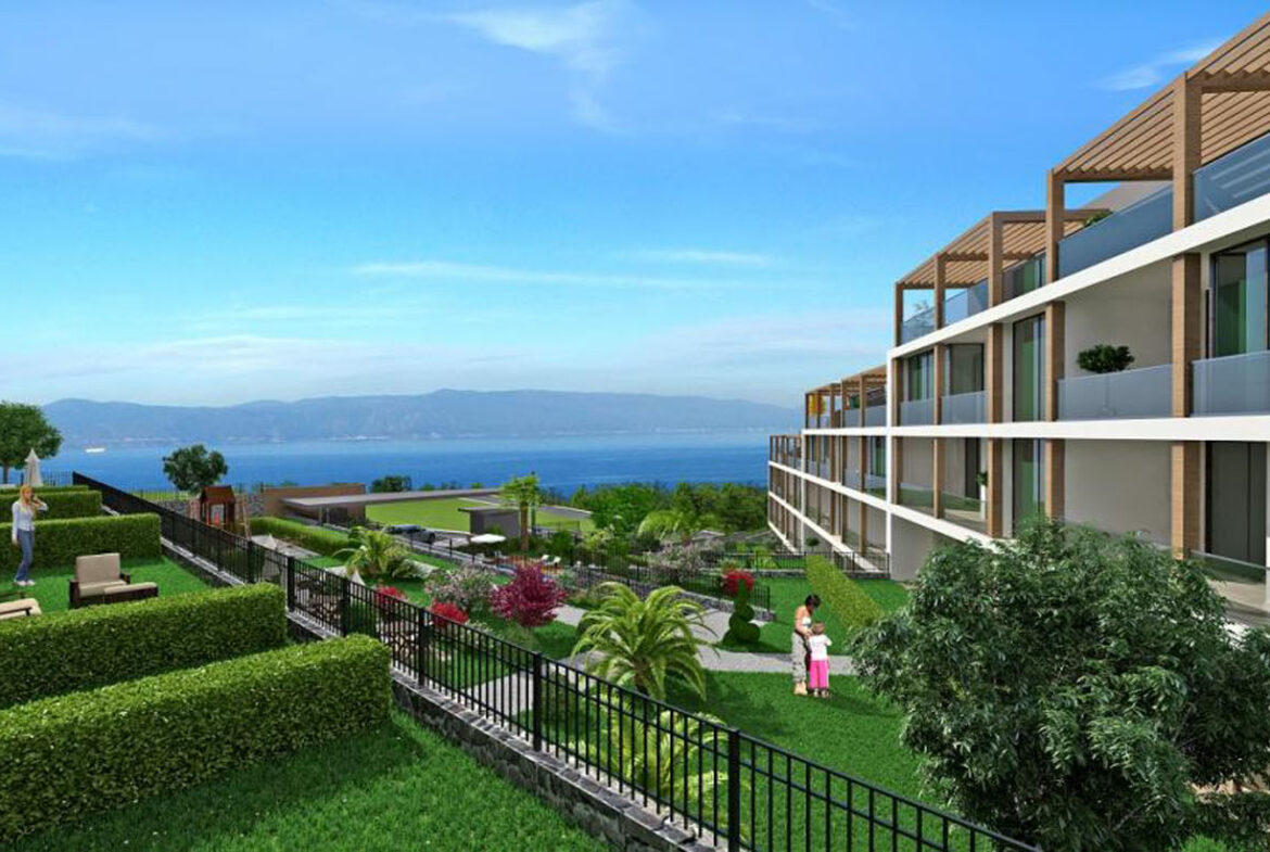 تم بناء المشروع في منطقة شديدة الانحدار بارتفاعات مختلفة مما يعني أن جميع الشقق تتمتع بإطلالة كاملة على البحر ، وتتميز الشقق بشرفات واسعة والطوابق العلوية عبارة عن شقق دوبلكس بينما تتمتع الشقق الأرضية بحديقة بمساحة 40 م.