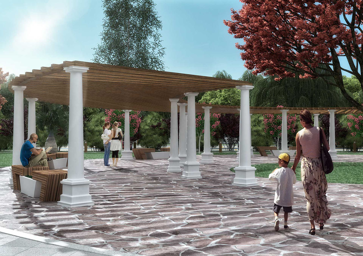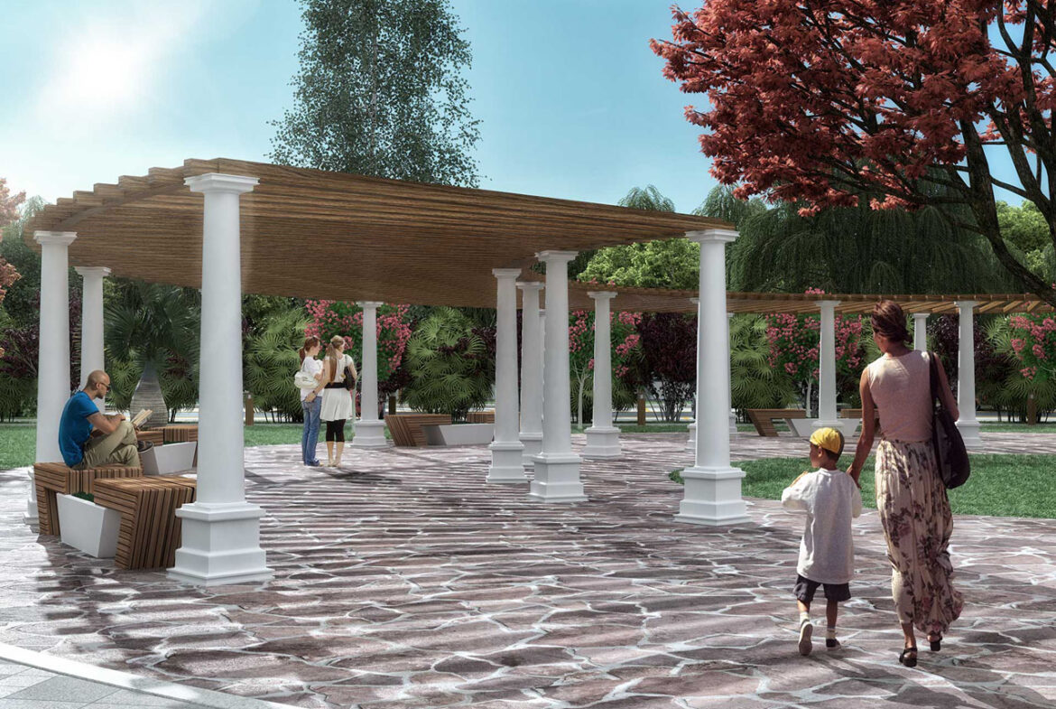تم بناء المشروع على مساحة 57،500 متر مربع ، وتشكل المساحات الخضراء جزء كبير منه.
