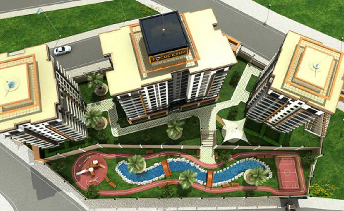 تم بناء المشروع على مساحة أرض 27000 متر مربع ويتكون من 3 أبنية بارتفاع 9 طوابق.