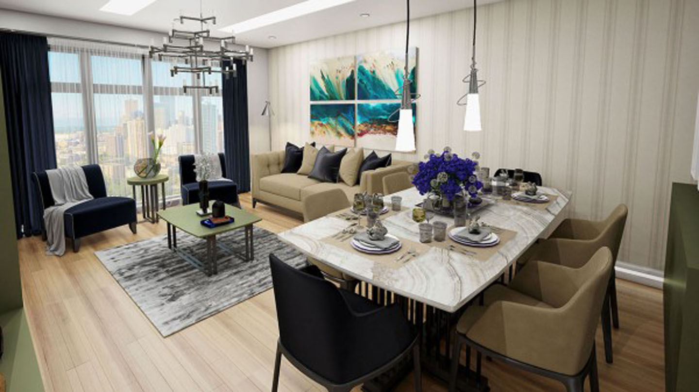 عدد الوحدات السكنية 166 وحدة تتنوع من غرفة نوم واحدة إلى أربع غرف نوم. وتتراوح أحجام الوحدات من 65 مترًا إلى 171 مترًا مربعًا.